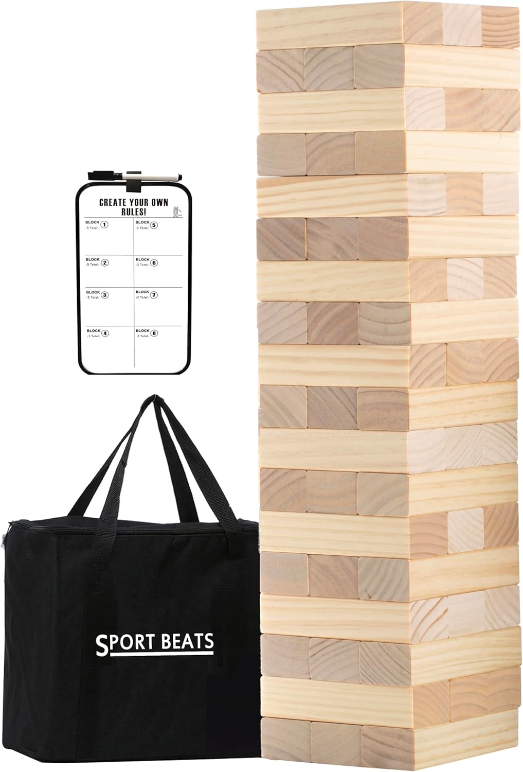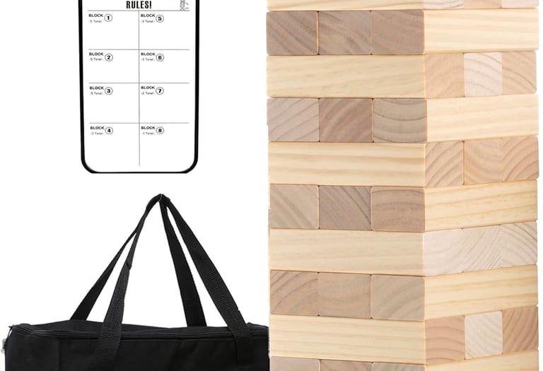 Get ready for fun with giant jenga! Perfect for outdoor gatherings, this oversized block stacking game challenges players to carefully remove blocks without causing the tower to tumble. Ideal for all ages, it's sure to bring laughter and excitement!