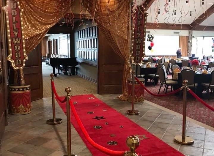 Give your party the red carpet treatment with our elegant red carpet rental, featuring luxurious gold stanchions and plush velvet red ropes for an unforgettable entrance!